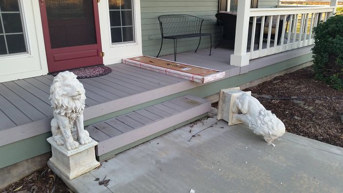 Kurier oparł paczkę o figurkę przez co ta przewróciła się i poobijała.